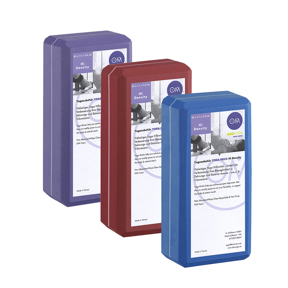 A versatile yoga accessory – helps improve mobility in stretch and balance Asanas. The hi-density EVA brick is solid, providing support without bending or squashing whilst being safer and lighter than the traditional wooden yoga brick.